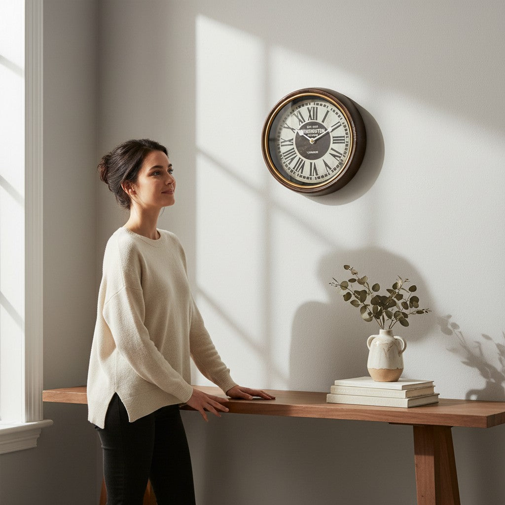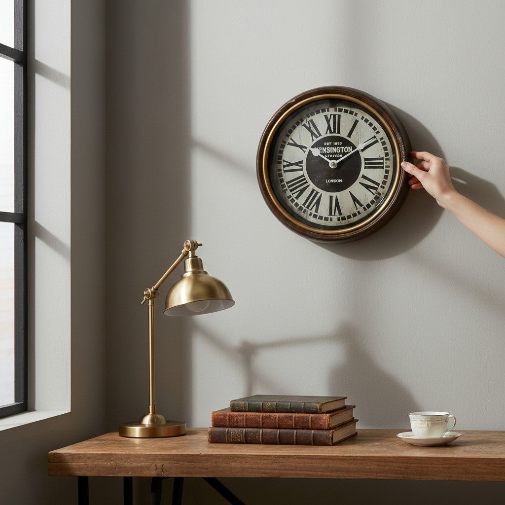 The Kensington Station Metallic Wall Clock brings a classic vintage charm inspired by old European railway stations. Designed with a metallic finish and bold, easy-to-read numerals, it adds a touch of elegance and heritage to any room. Its sturdy build, clear dial, and timeless look make it perfect for living rooms, hallways, offices, cafés, and vintage-themed interiors. A stylish blend of history, durability, and decorative appeal.