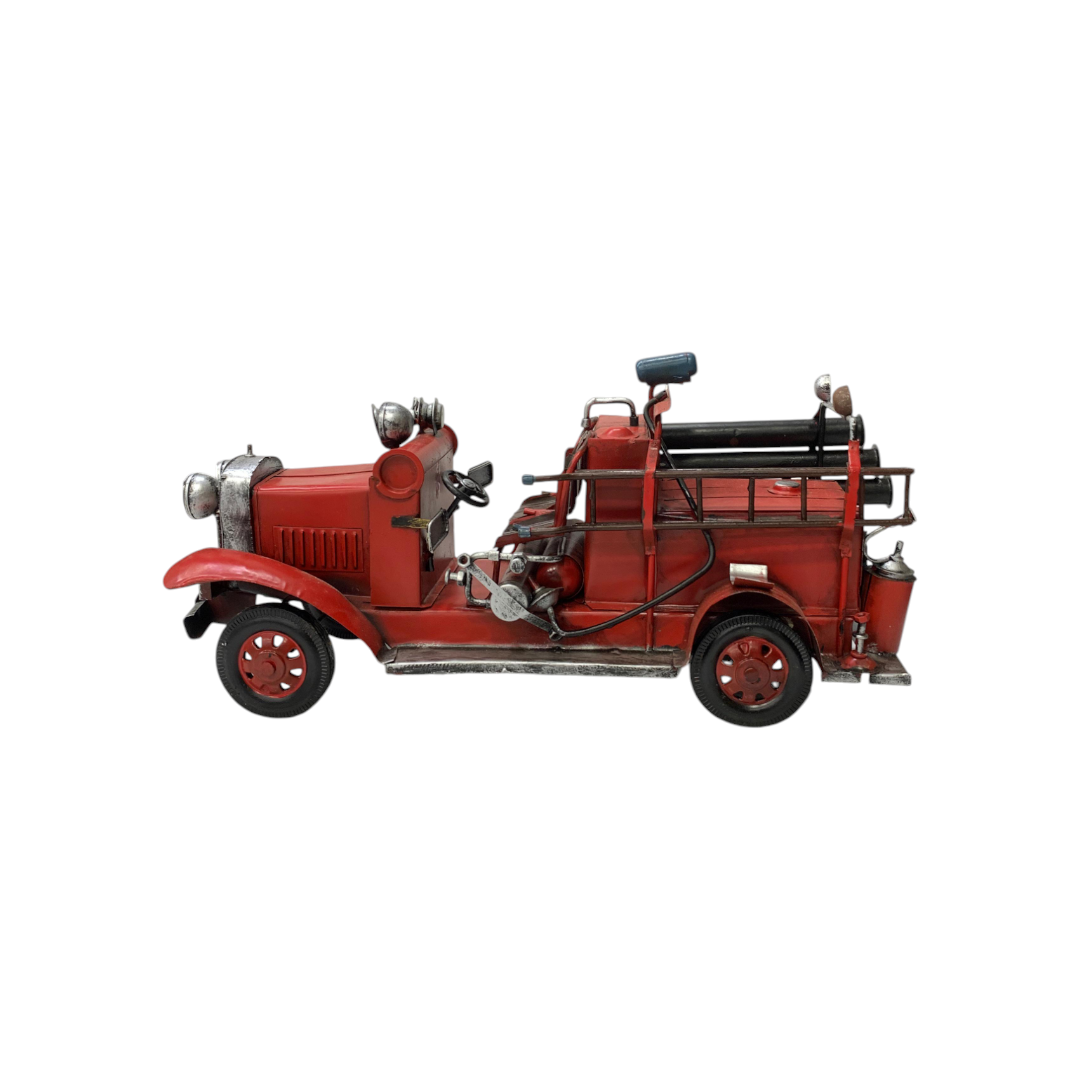 The Metallic Vintage Fire Truck Model is a finely detailed miniature that celebrates the heritage of early firefighting vehicles. Finished in a bright red metallic tone, it features authentic details such as ladders, hoses, water tanks, headlights, and a siren light. Its open cab design, spoked wheels, and intricate engine components highlight the craftsmanship of classic fire engines. Perfect for collectors, history enthusiasts, or as a decorative piece, this model pays tribute to the bravery and tradition of firefighting’s golden era.