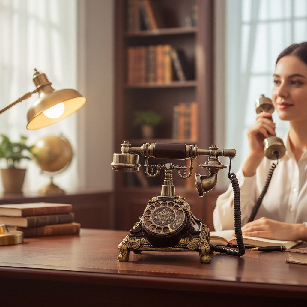 Whether displayed on a console table, study desk, or shelf, the Vintage Royale Dial Telephone brings charm, character, and a touch of luxury from the golden era of communication.