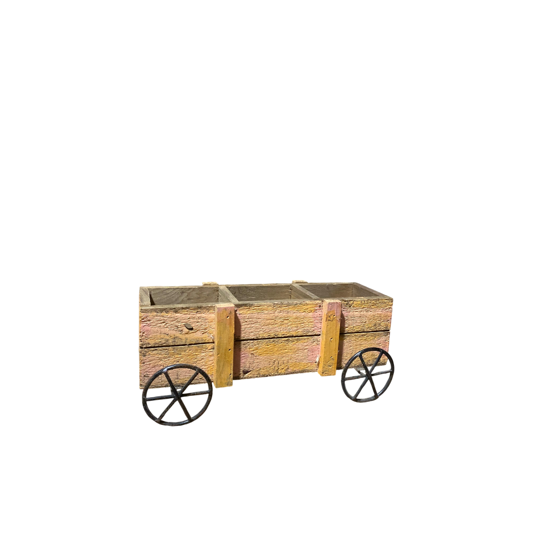 The "Vintage Wagon Flower Planter" brings a touch of rustic charm to your outdoor or indoor decor. This beautifully crafted wooden planter, designed to resemble a traditional wagon, adds a unique, countryside-inspired element to your balcony, patio, or garden. With its functional wheels and sturdy construction, it offers both style and practicality for displaying flowers, plants, or greenery. The weathered, vintage finish gives it a timeless appeal, making it the perfect decorative piece to enhance any outdoor space or indoor garden. Whether placed on a porch, balcony, or in a garden, this wheelbarrow-style planter creates a cozy, inviting atmosphere with its old-world charm.